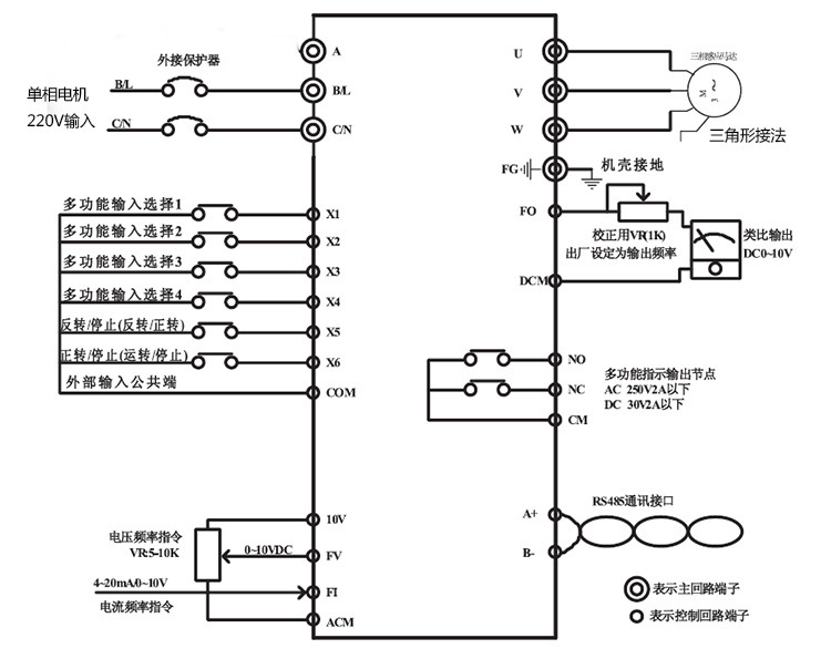11.多功能繼電器輸出,實現運轉中、頻率到達、外部異常等各種狀態時繼電器輸出